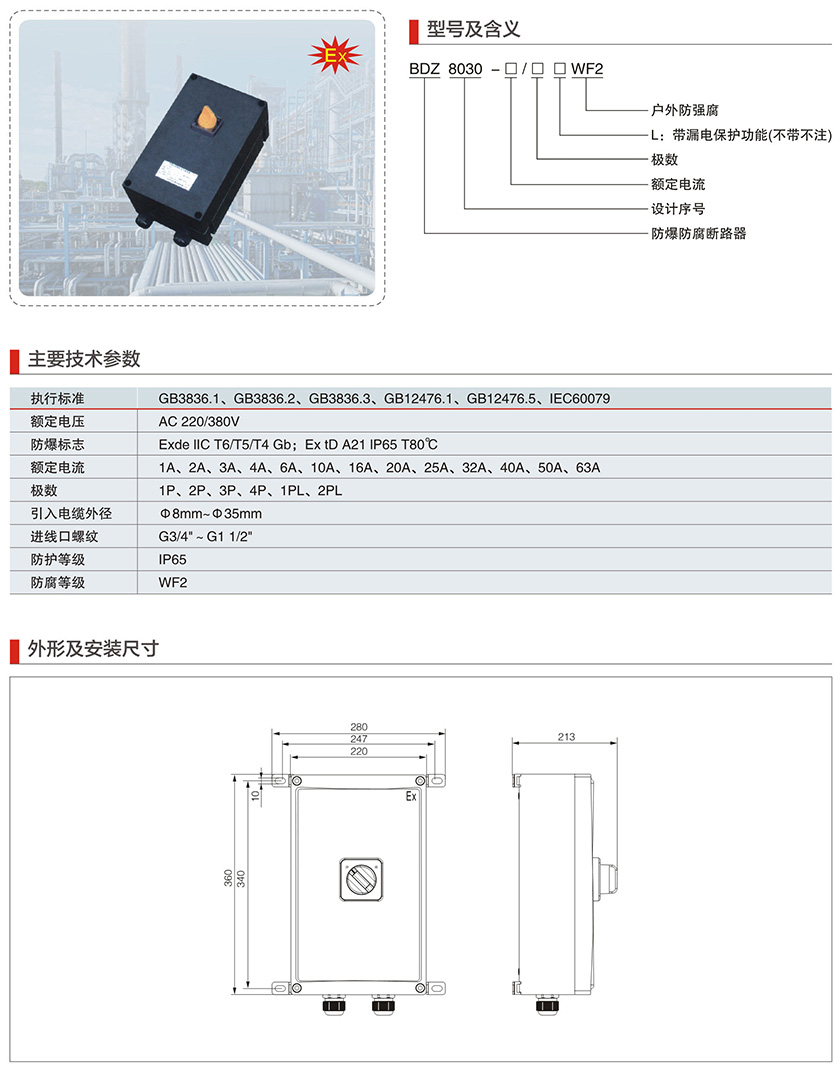 BZM8050系列防爆防腐照明开关(IIC、Ex tD)